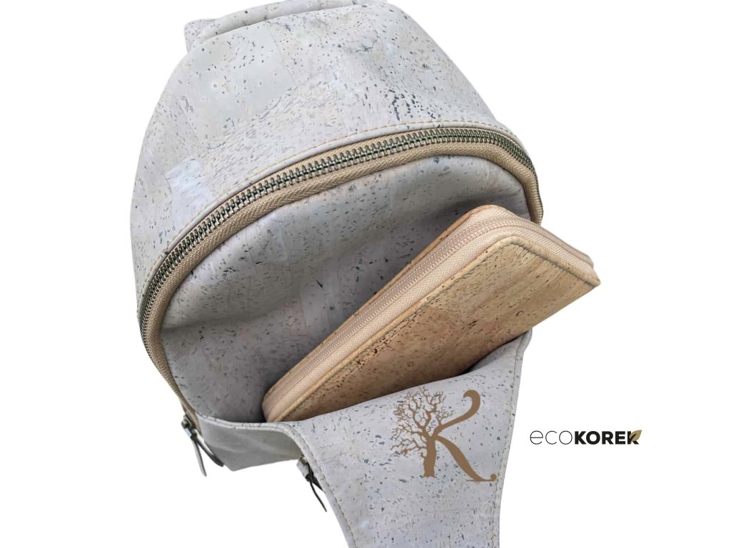 Korkový batoh TRAVEL je vyrobený z nejjemnějšího portugalského korku s délkově nastavitelnými korkovým popruhem. Z venku je jedna malá kapsa na zim, například na mobilní telefon, který máte ihned při ruce. Další venkovní kapsa je uzavíratelná okrasnou karabinou, která dělá zároveň i pěkný detail. Hlavní prostor batohu má zapínání na zip a uvnitř najdete ještě jednu vnitřní kapsičku. Batoh má jeden popruh pro nošení přes jednu rameno, nebo jako crossbody. Vyroben z nejkvalitnějších materiálů.