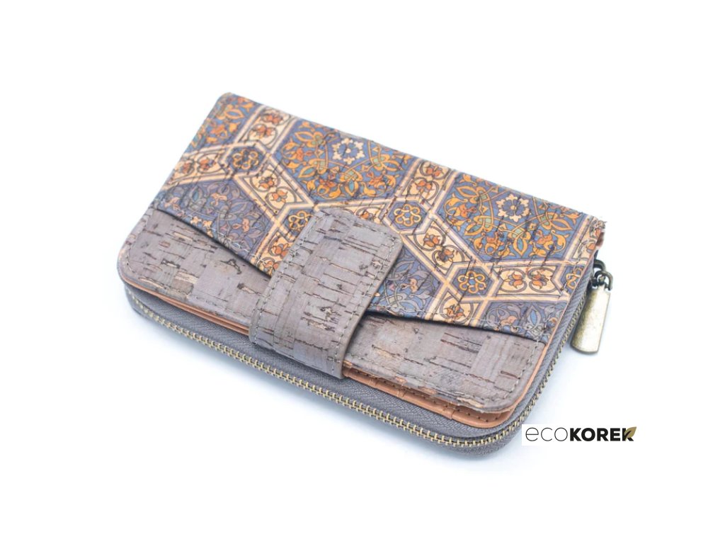 Peněženka má 8 přihrádek na karty, 4 větší přihrádky v hlavní části, jednu přihrádku na bankovky a velkou přihrádku s kovovým zipem na mince. Je vyrobena z vysoce kvalitního korku, který je šetrný k životnímu prostředí, velmi měkký, pružný a odolný!
